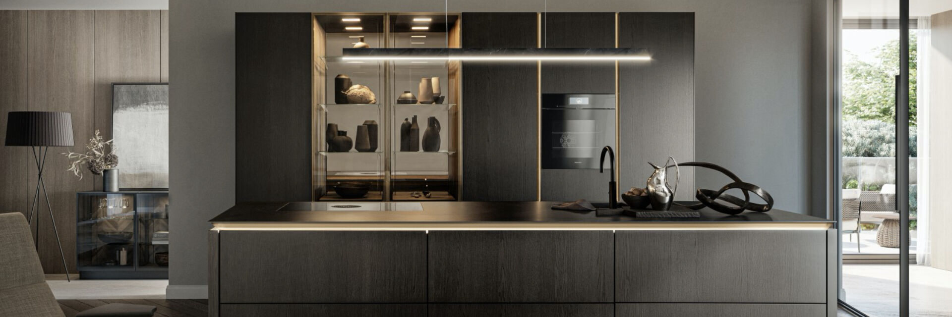 De vernieuwde greeplijst is hét middelpunt van SieMatic SLX. De greeplijst staat onder een hoek, waardoor het zwevende effect van het werkblad wordt versterkt. Het materiaal van de greeplijst loopt door op de bovenzijde van de fronten. Dit zorgt voor een fijne grip en een verfraaide uitstraling. Daarnaast kan de greeplijst voorzien worden van verlichting. Het led-licht kan qua licht-temperatuur en licht-sterkte aangepast worden. Op deze manier bepaal je zelf de gewenste sfeer.