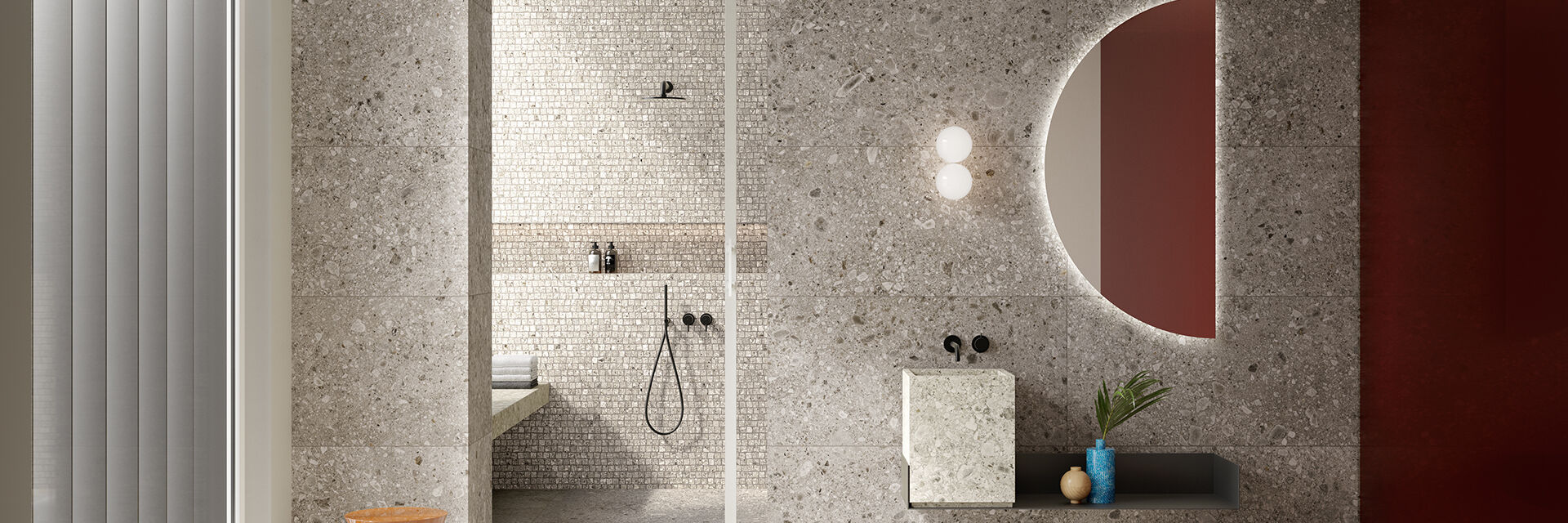 Als je een vloertegel op de wand toepast, zal deze op de wand iets donkerder ogen. Dit heeft te maken met lichtval. Waar bij een vloertegel het licht er recht op valt, is er op de wanden vooral strijklicht. Apparici is een merk die hierop heeft ingespeeld. Zij hebben een serie waarbij de tegel op de wand een tint lichter is dan de vloertegel. Hierdoor zijn de liggende en staande tegel vrijwel gelijk.